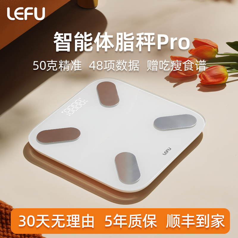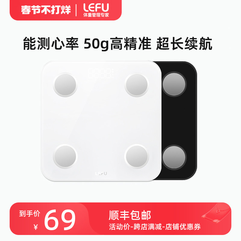 乐福LEFU智能体脂秤家用精准专业测量心率秤充电体脂称黑色连接手机体重秤人体电子秤