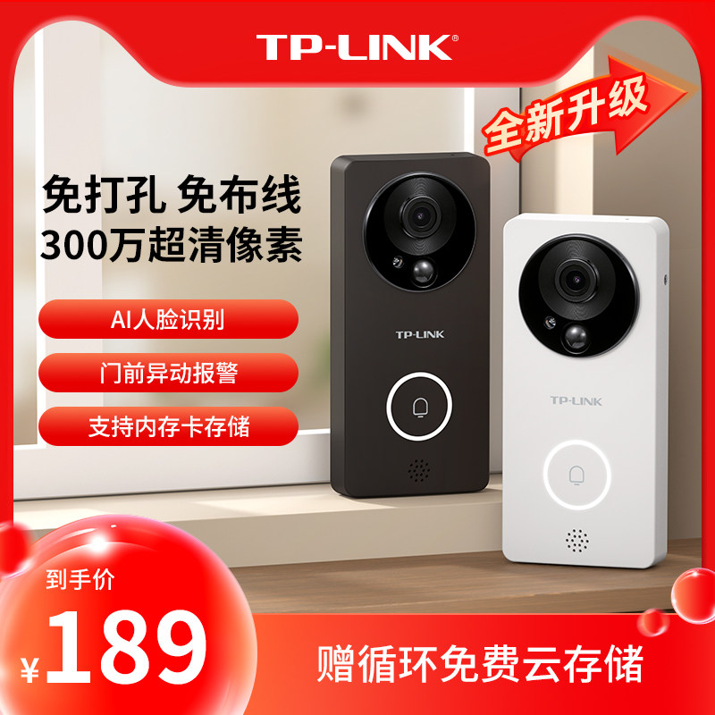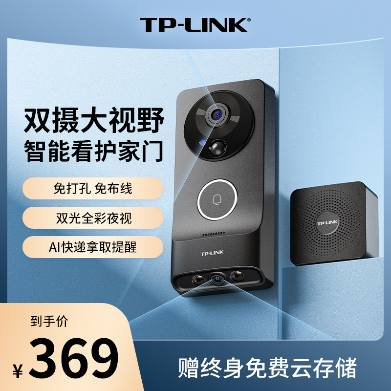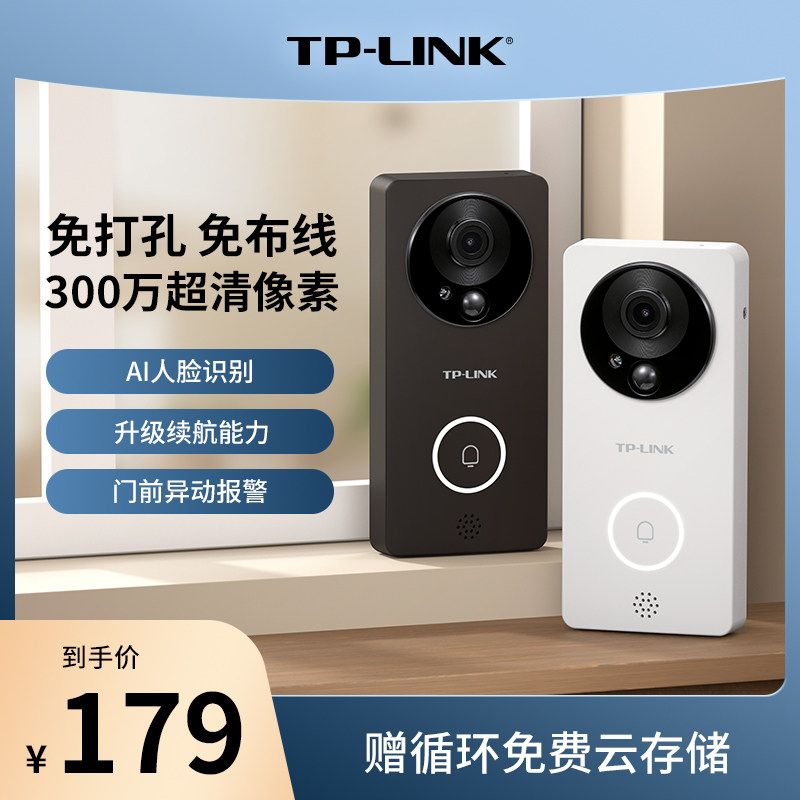 TP-LINK可视门铃家用电子智能猫眼防盗门口监控免打孔摄像头无线