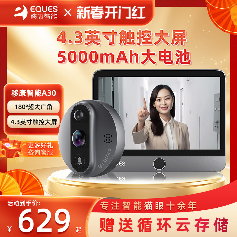 移康智能猫眼A30 可视门铃电子猫眼监控摄像头二合一手机远程防撬
