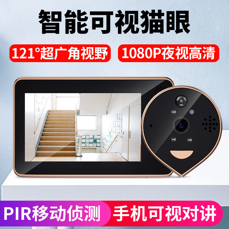 智能电子猫眼门镜二合一监控摄像头可视门铃家用防盗门监控器显示屏远程手机录像wifi无线免打孔防撬夜视高清