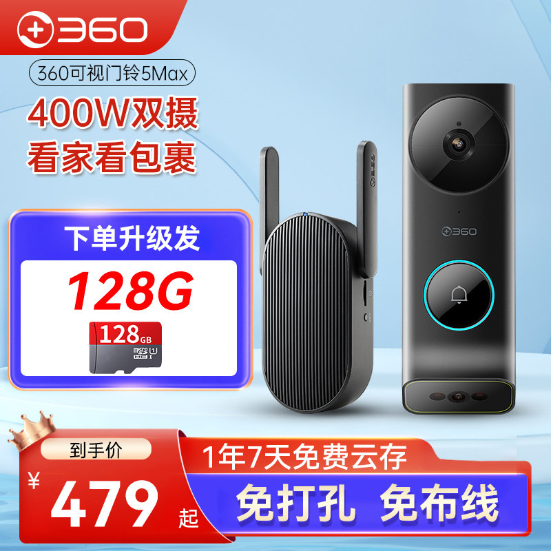 360可视门铃5Max双摄像头400万家用智能猫眼无线监控门镜电子猫眼