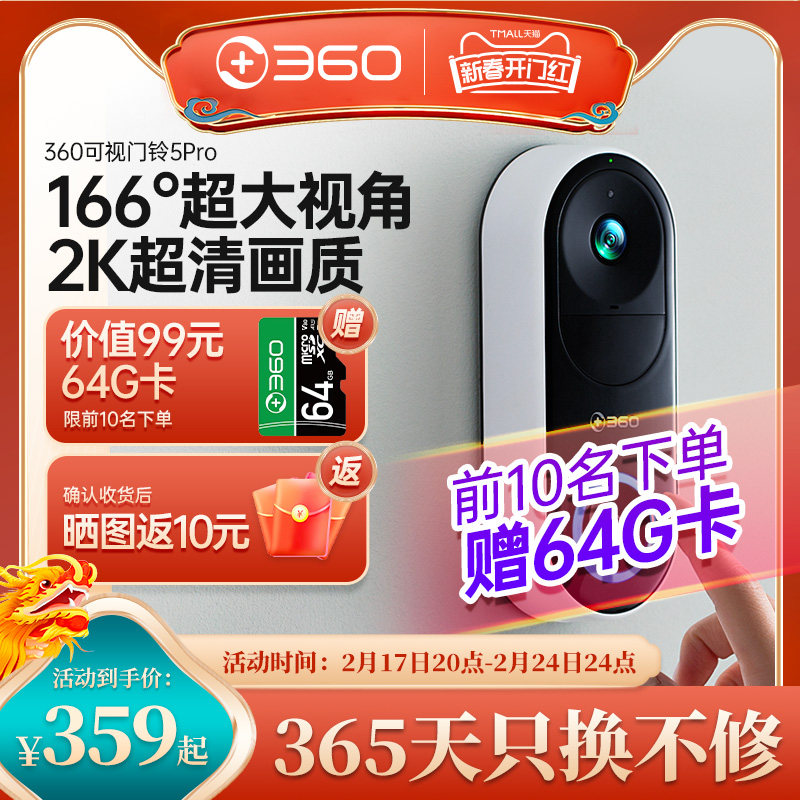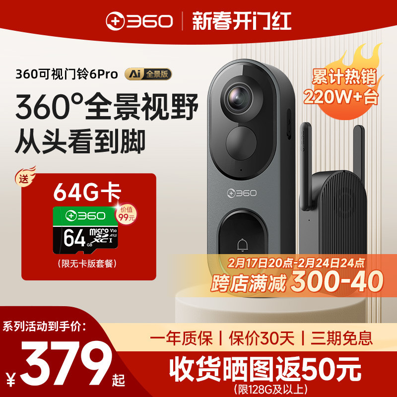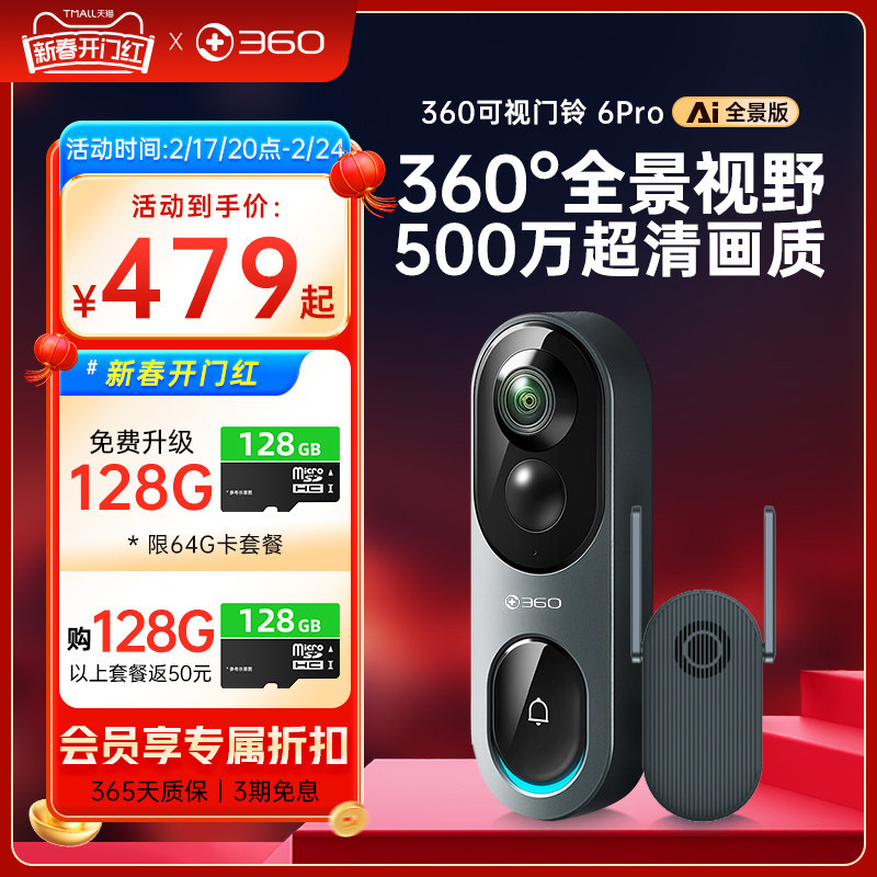 【新品】360可视门铃6Pro家用500万智能电子猫眼360度全景监控