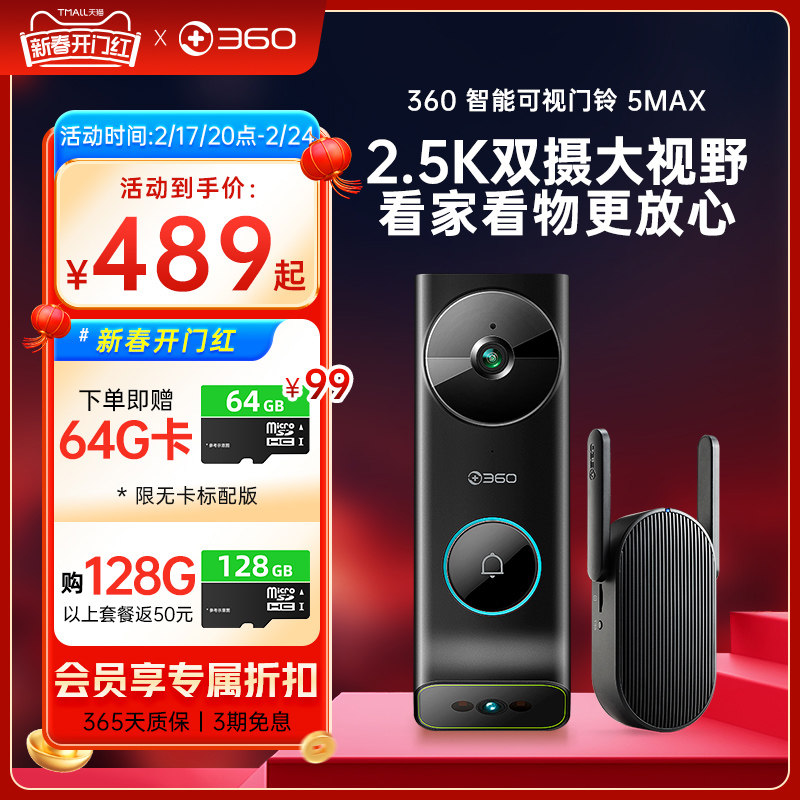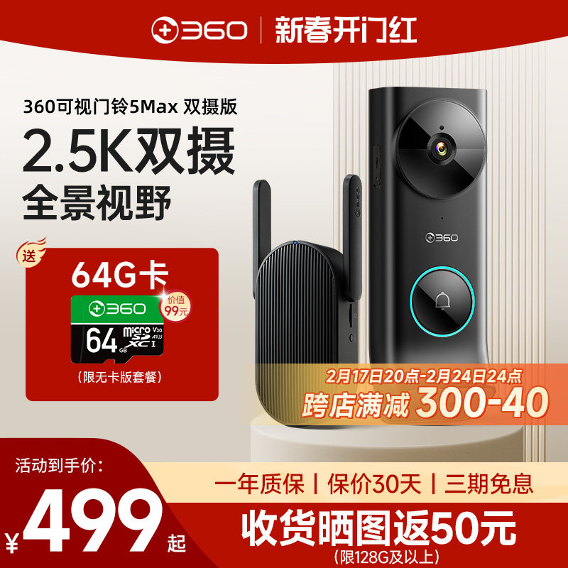 360可视门铃5Max 2.5K双摄电子猫眼监控摄像头无线免打孔智能门镜