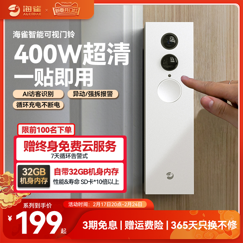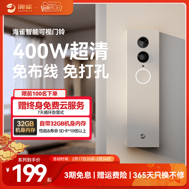 华为云海雀智能可视门铃360监控家用可视电子猫眼门口无线摄像头