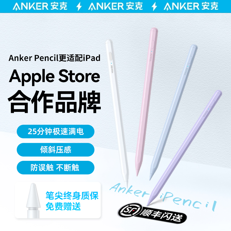 Anker安克电容笔apple pencil手写笔ipad触控笔ipadpencil2代一代pro适用苹果平板触屏笔通用applepencil二代