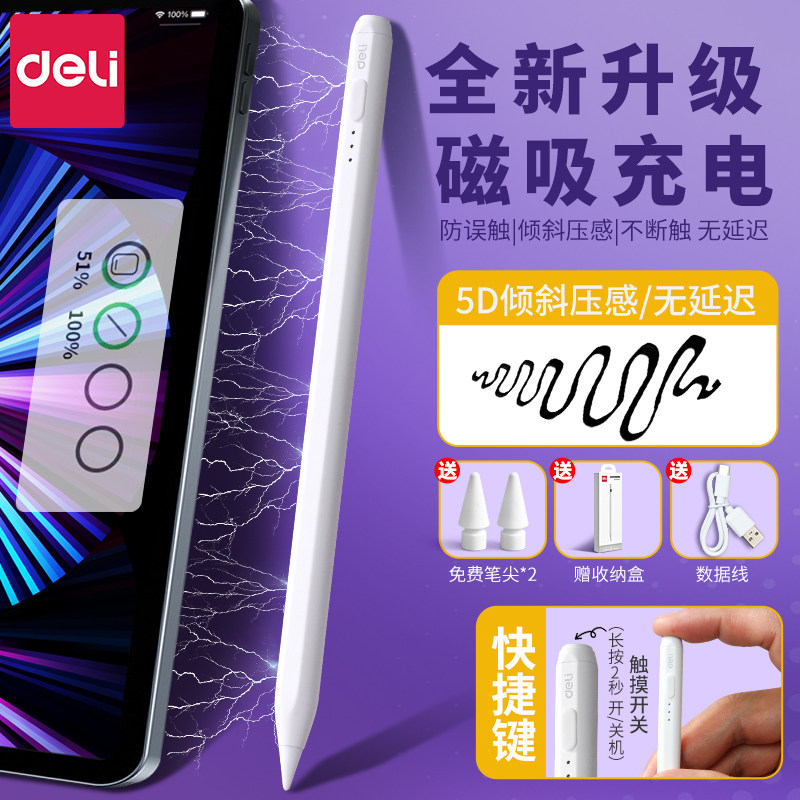 得力触控电容笔适用apple pencil 苹果ipad触控笔防误触一代2代ipadpencil触屏笔pro平板air手写笔平替