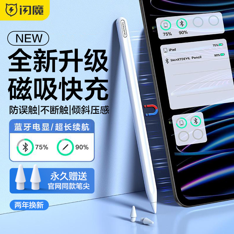 闪魔电容笔适用apple pencil苹果一二代ipad触控笔pro平板触屏笔air5通用ipadpencil手写笔平替9蓝牙ipencil