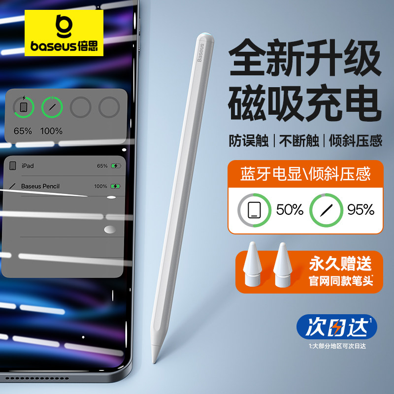 倍思适用apple pencil电容笔苹果ipad触控笔磁吸充一代2代ipadpencil触屏笔ipencil二代pro平板air手写笔平替
