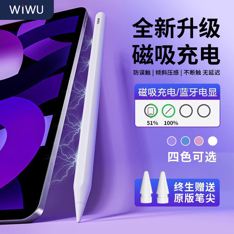 wiwu电容笔适用平板pencil防误触ipad9平板笔10触屏笔ipencil第一代二代笔平替触控手写笔适用pencil磁吸充电