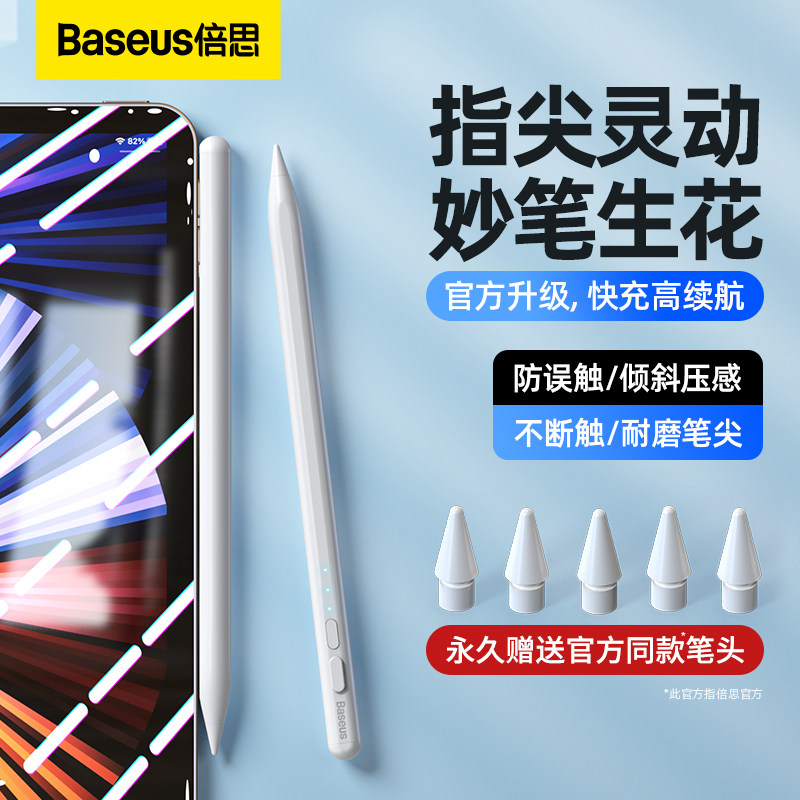 倍思适用苹果apple pencil电容笔ppt按键翻页ipad触控笔ipadpencil触屏笔ipencil二代air平板磁吸充电手写笔