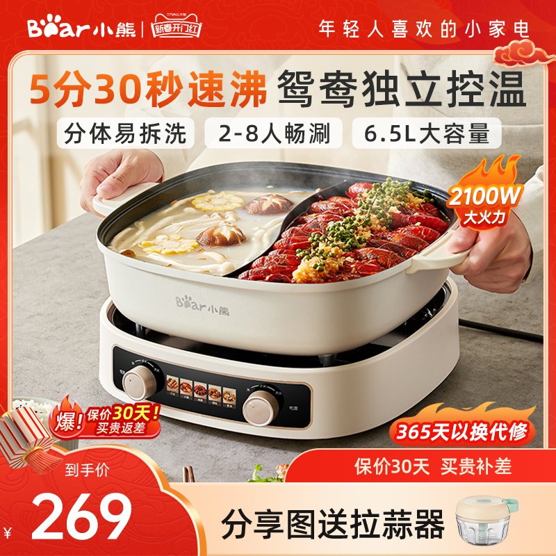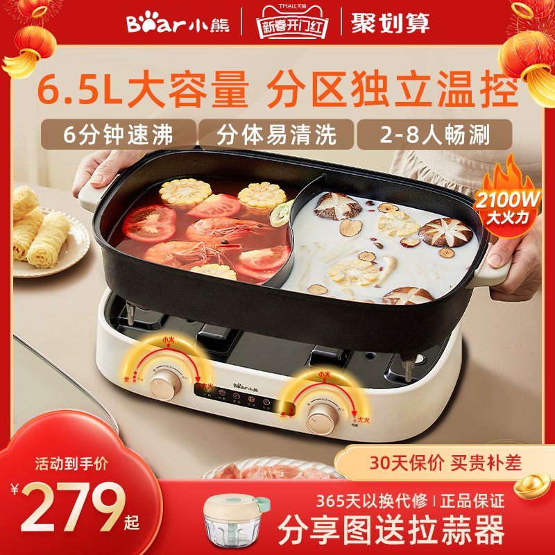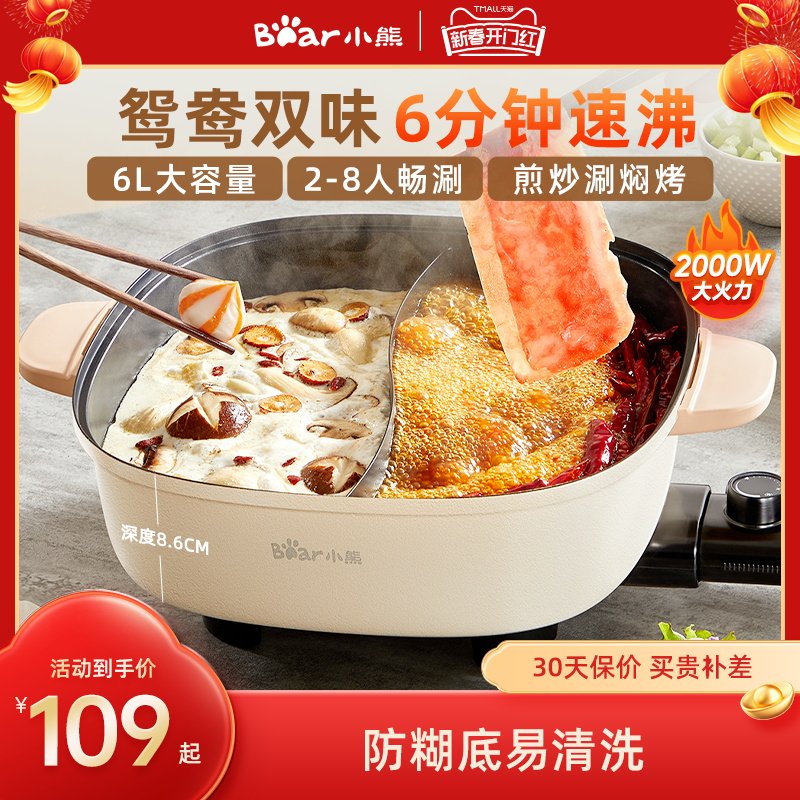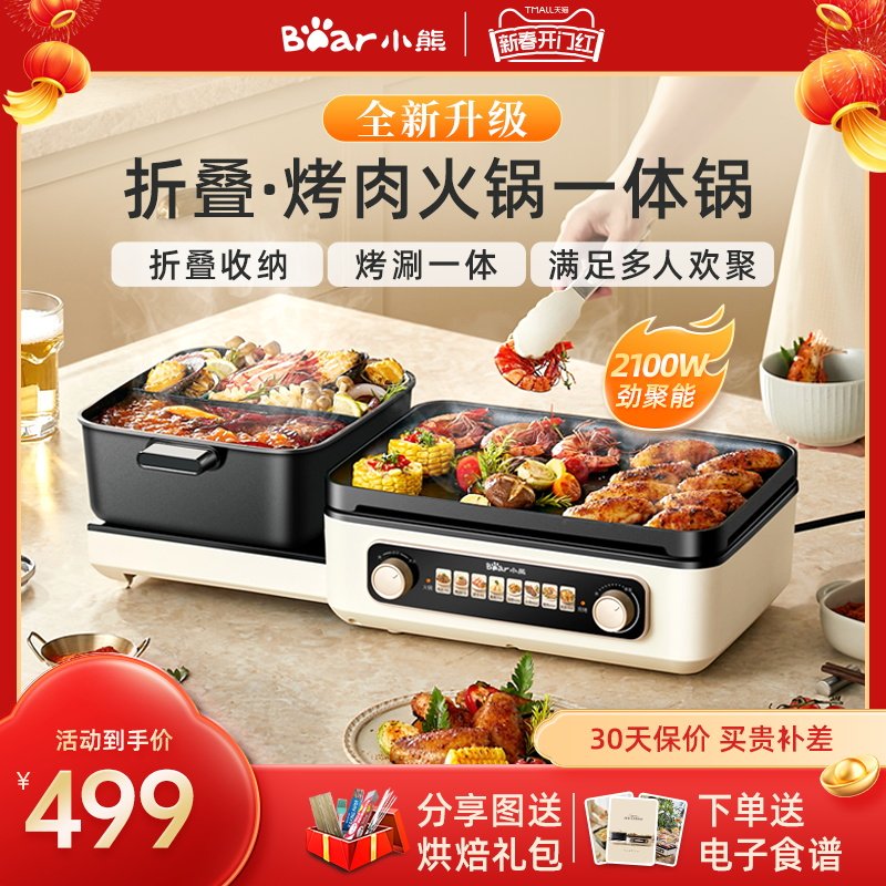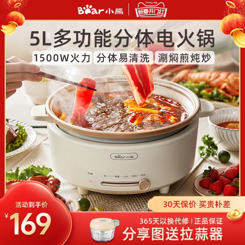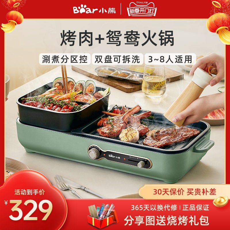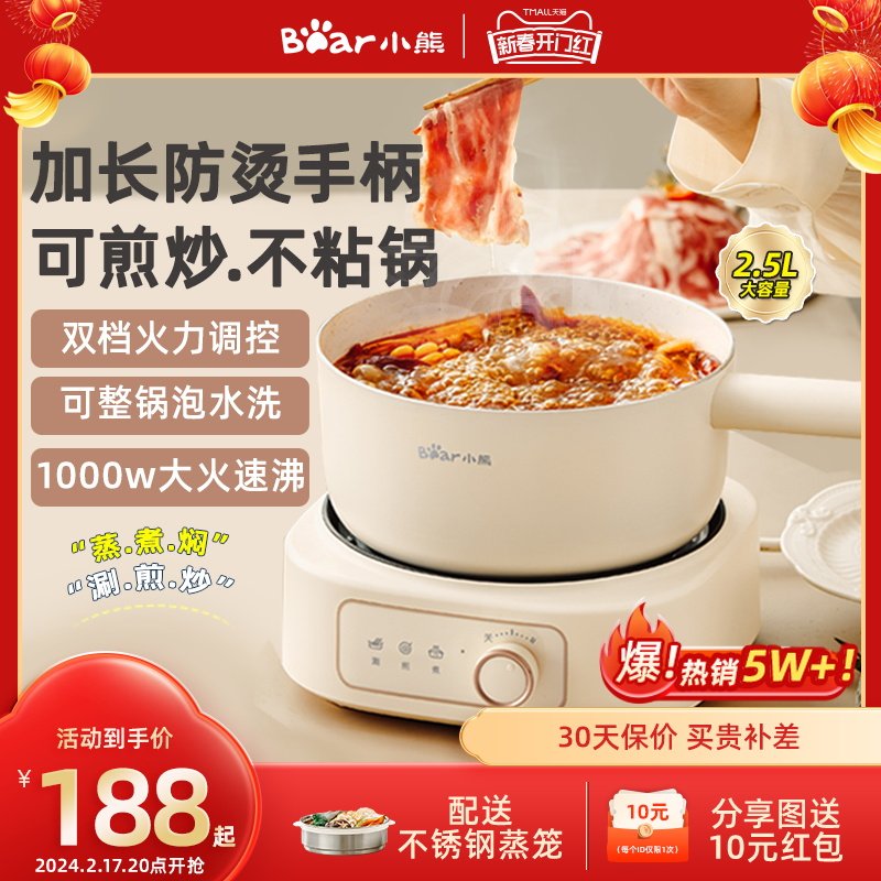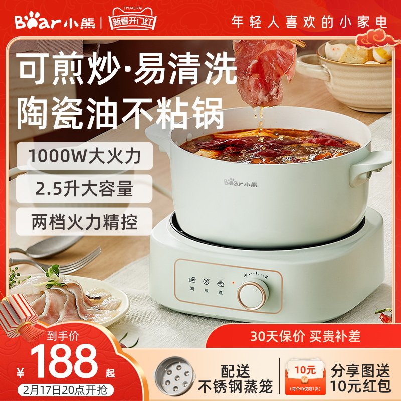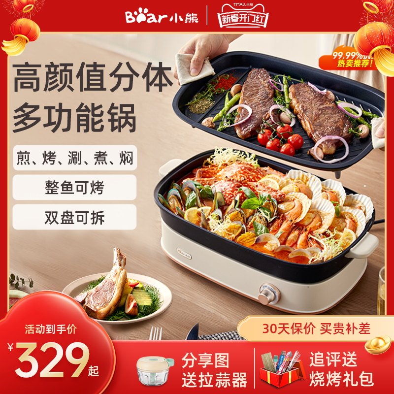小熊电火锅锅家用烤肉多功能料理一体式电煮锅电热锅炒菜不粘锅