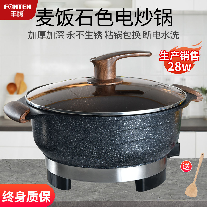 电炒锅多功能家用电火锅麦饭石色电热锅蒸煮一体式插电炒菜锅电锅