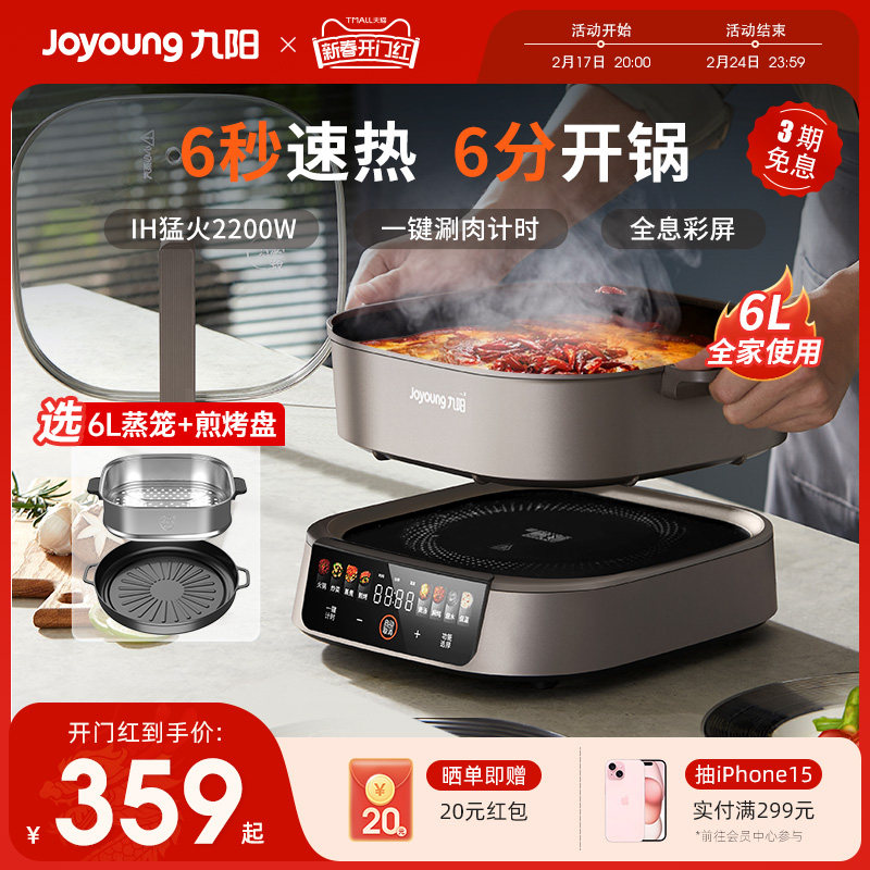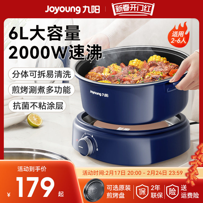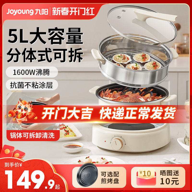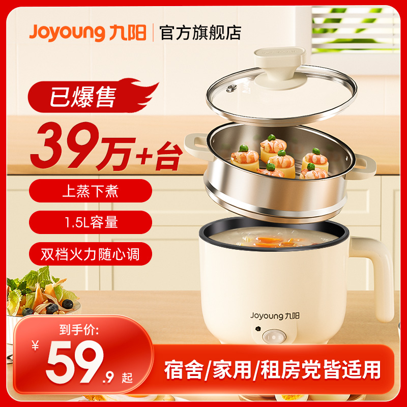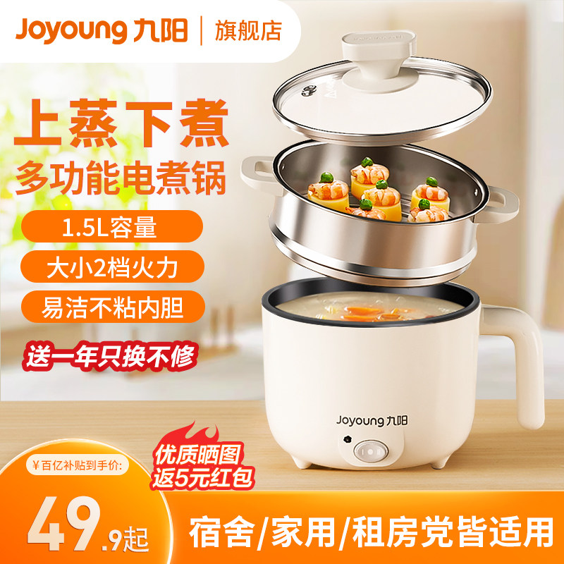 九阳电煮锅宿舍学生煮面锅蒸煮一体多功能火锅家用小型煮面锅蒸锅
