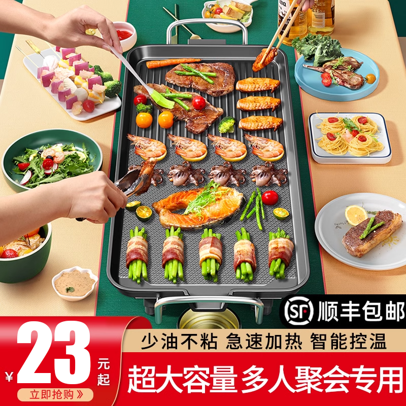 电烧烤炉家用烤肉机电烤盘少烟涮烤韩式多功能室内火锅一体锅烤鱼