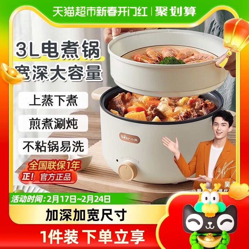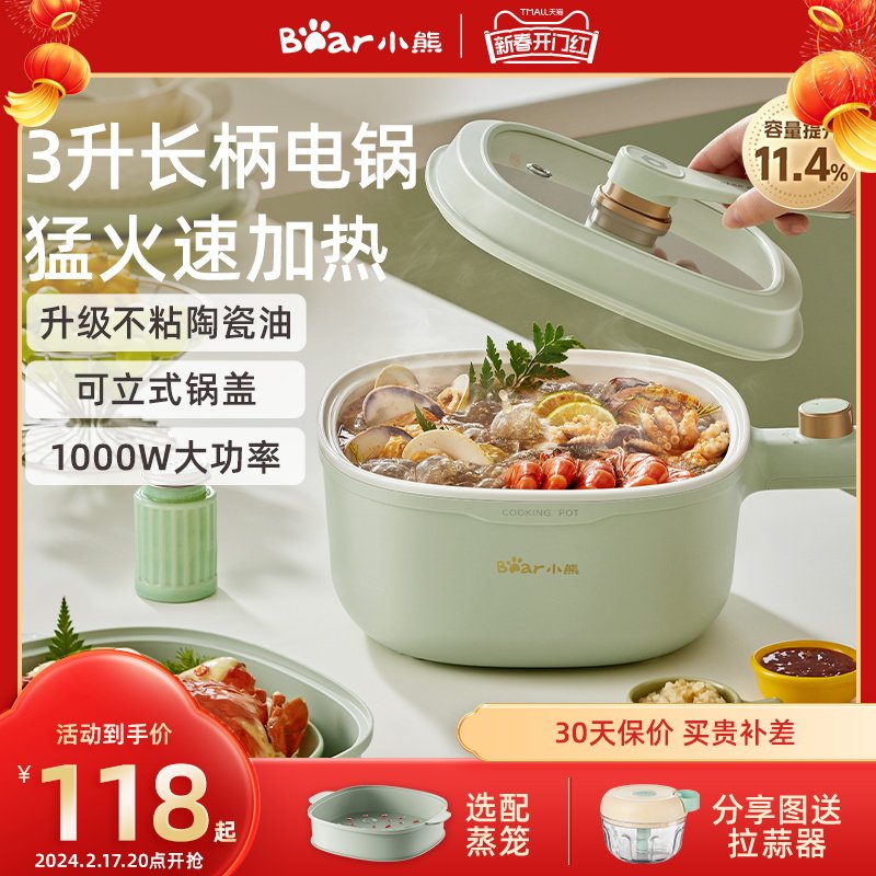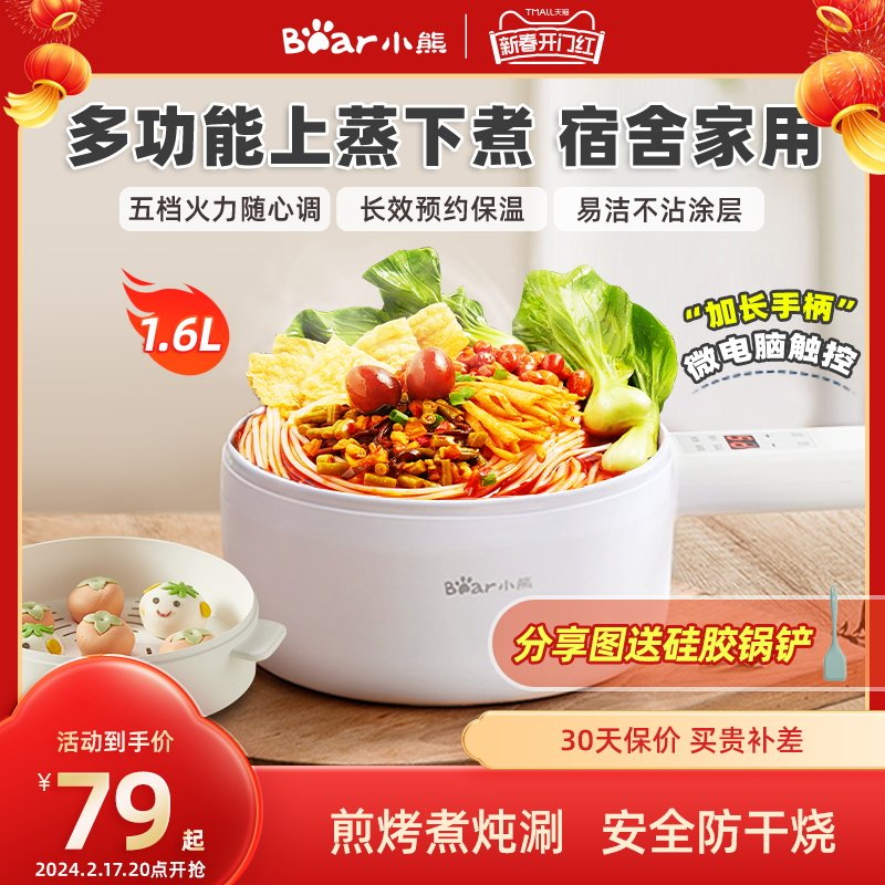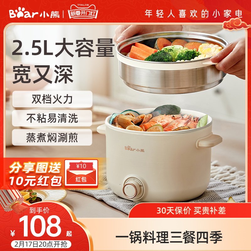 小熊电煮锅一体锅多功能家用火锅大容量宿舍学生锅电炒锅小电锅