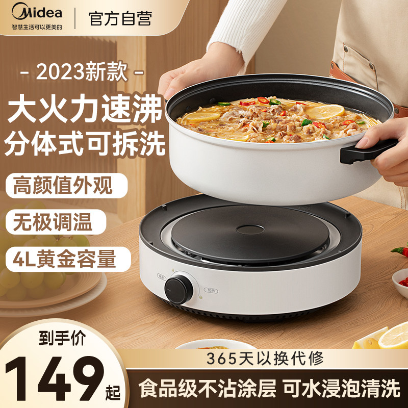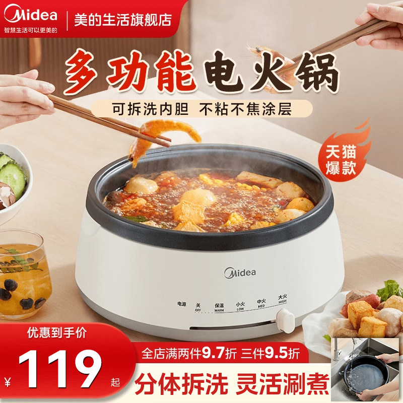 美的电煮锅多功能可拆洗家用电火锅大容量可分体式不粘电热锅爆品