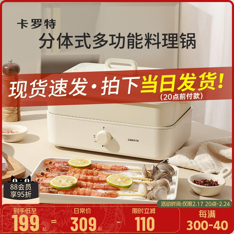 苏泊尔电火锅家用电煮锅多功能宿舍电锅分体式电热锅一体式电炒锅