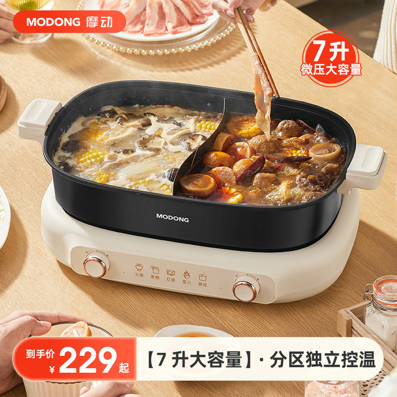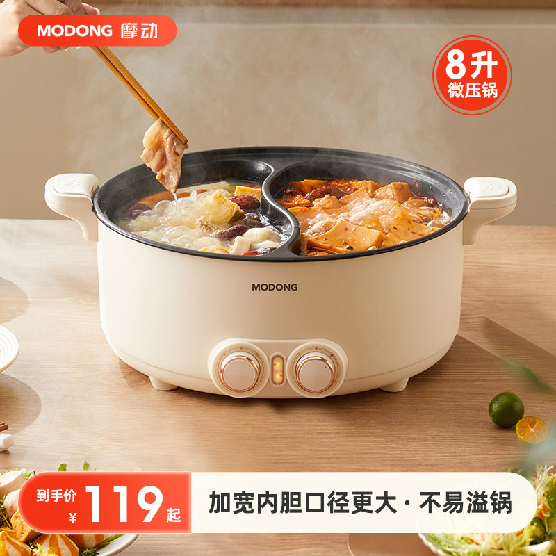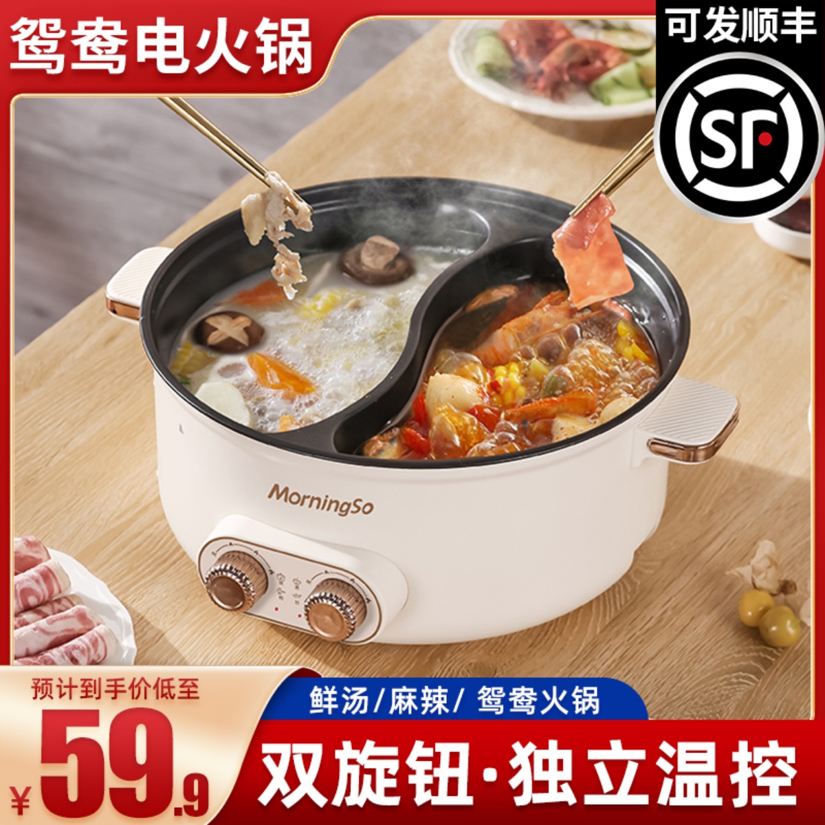 摩动鸳鸯电火锅家用电煮锅多功能一体大容量宿舍学生电炒锅小电锅