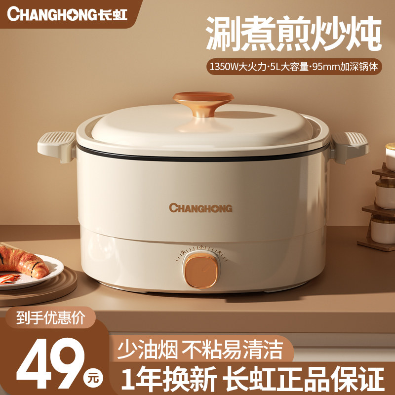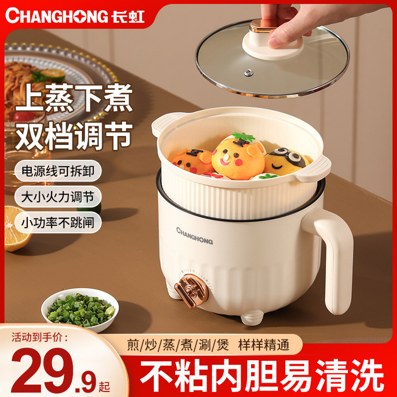 长虹电煮锅多功能家用小锅学生宿舍煮面电热火锅小型泡面锅小电锅