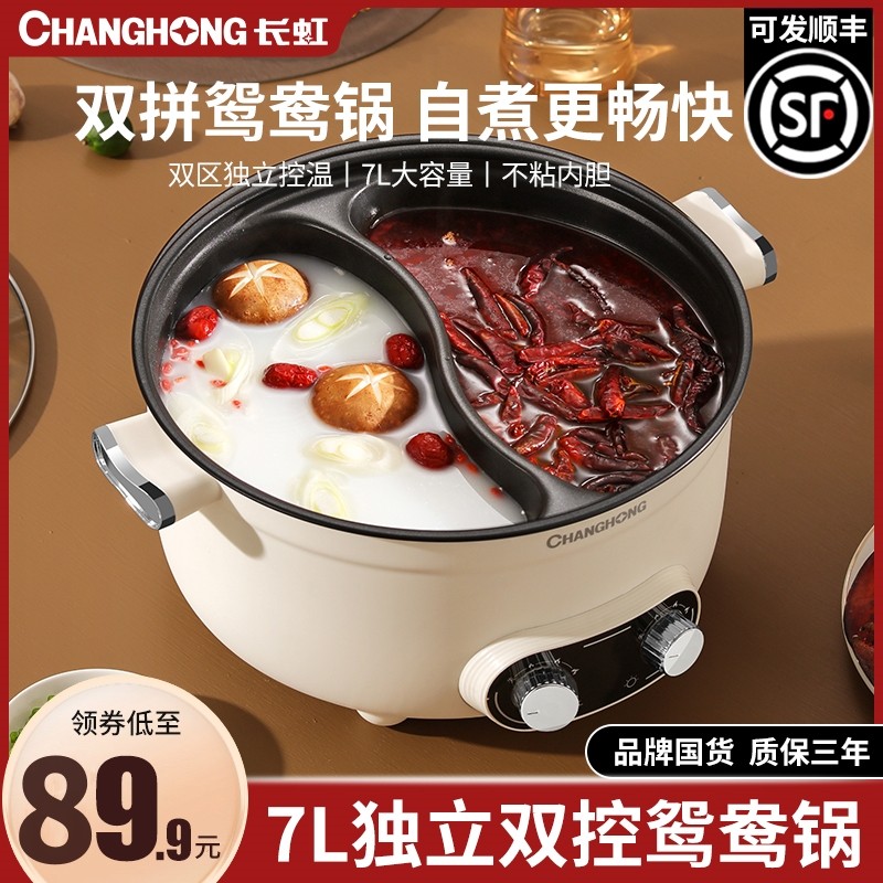 长虹电火锅家用鸳鸯锅多功能一体大容量不粘锅宿舍电煮锅电热火锅
