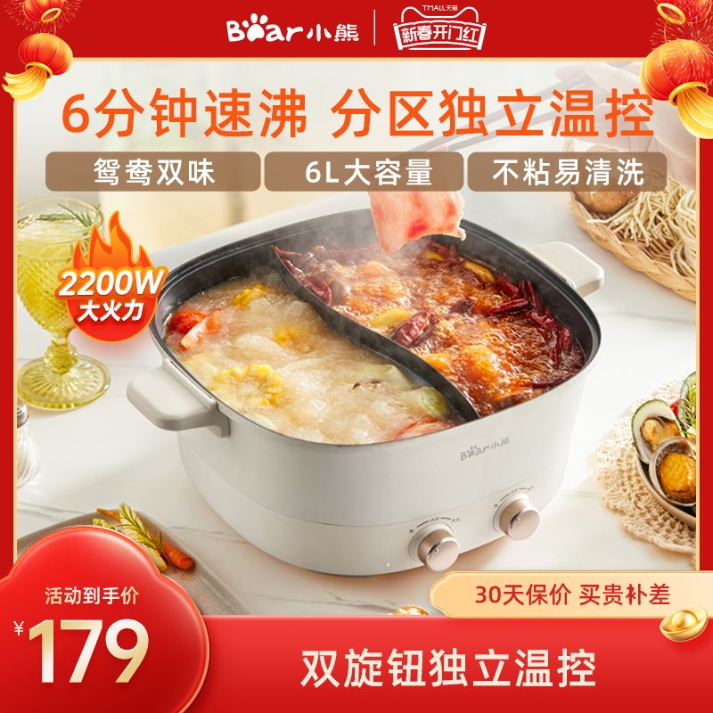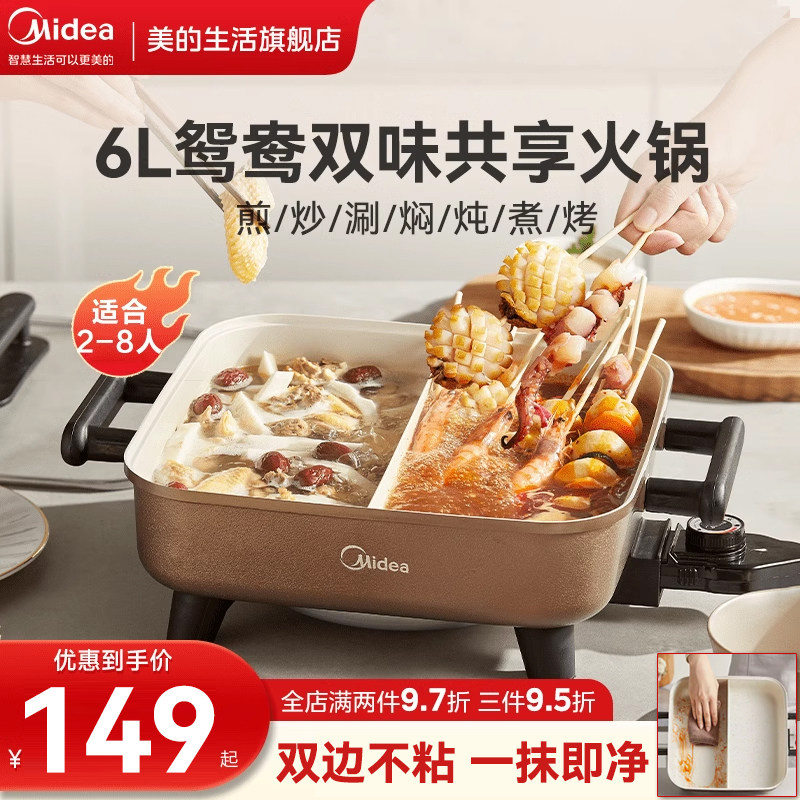 美的火锅家用锅电热火锅锅鸳鸯多功能分体式电炒锅电煎锅电煮锅6L