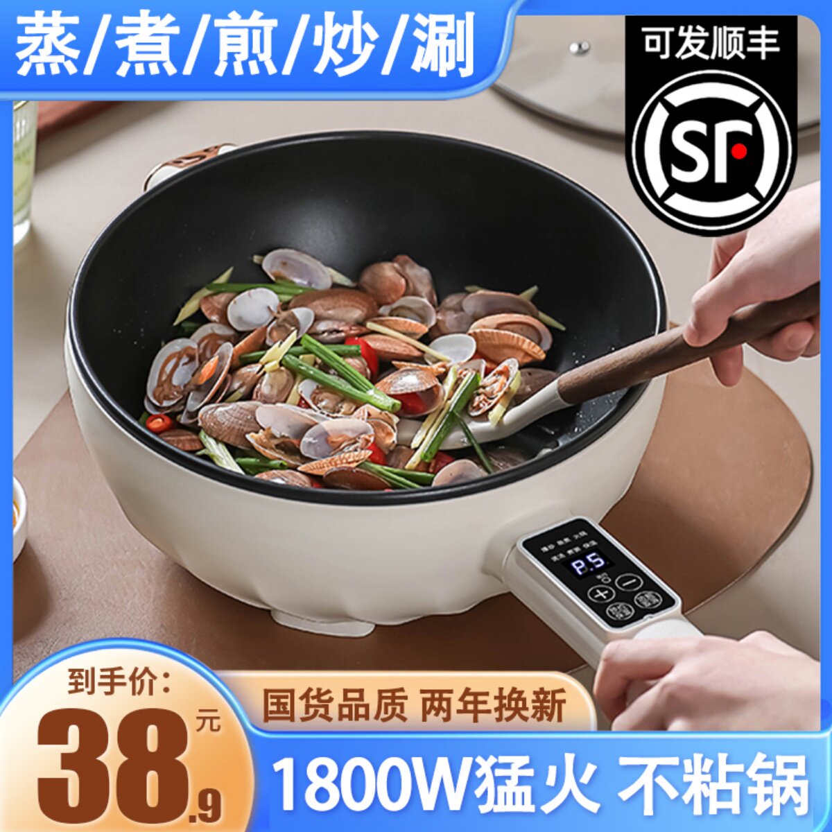 电炒菜炒锅家用电煮锅多功能火锅宿舍学生小型蒸煮煎炒一体锅不粘
