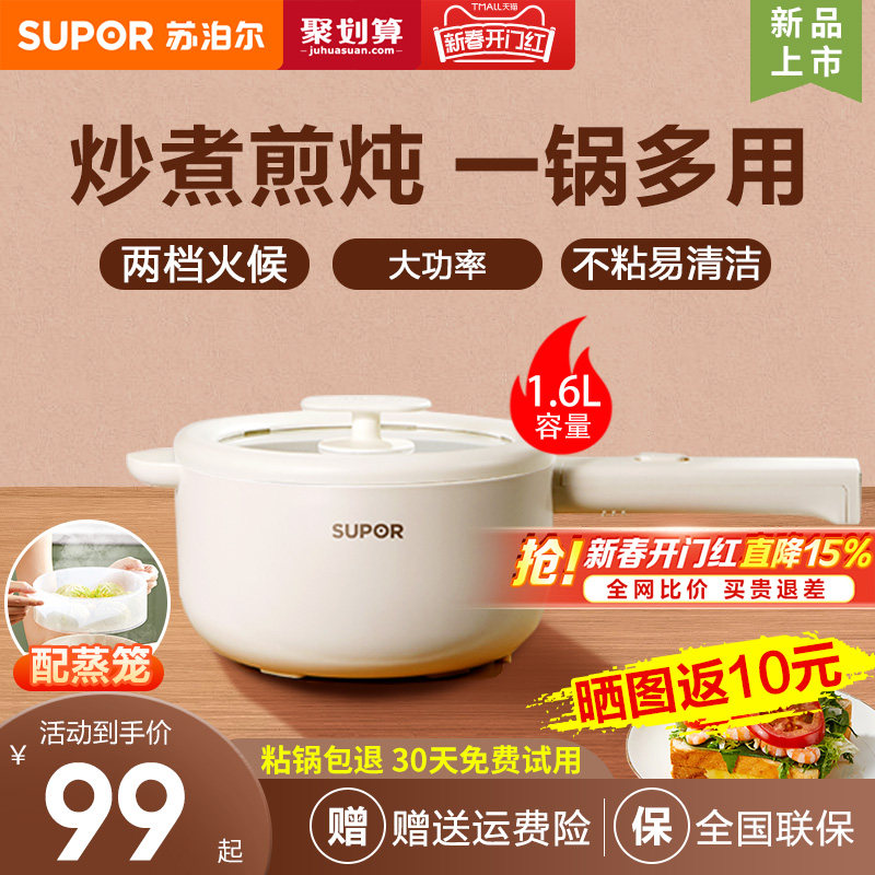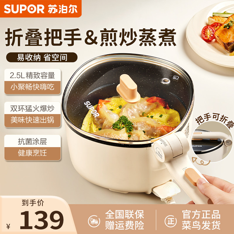 苏泊尔电煮锅家用多功能炒菜锅火锅一体锅折叠锅学生宿舍迷你蒸锅