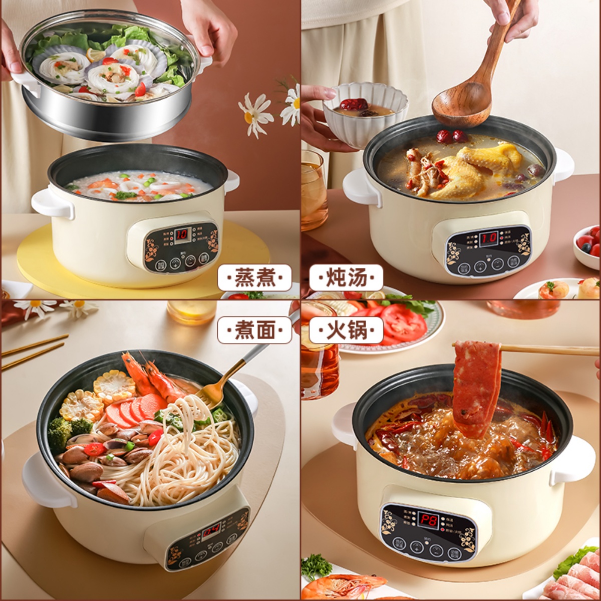电煮锅多功能家用电火锅学生宿舍煮面小电锅蒸煮一体锅电炒菜炒锅