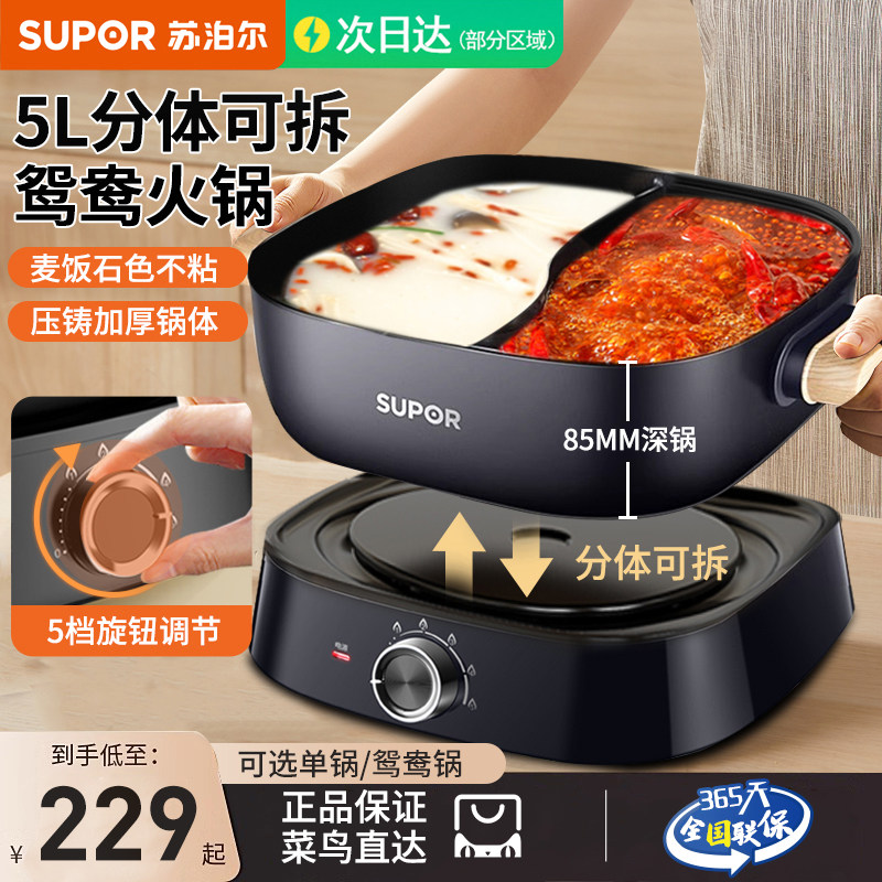 苏泊尔鸳鸯电火火锅锅家用多功能一体式电炒菜炒锅电热电锅电煮锅