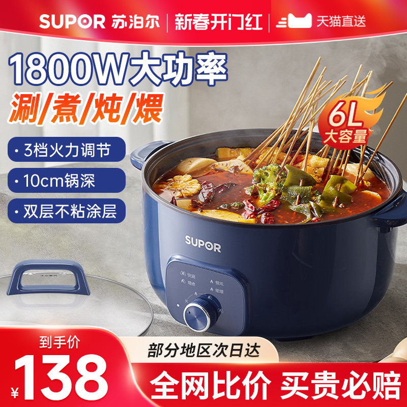 苏泊尔电火锅家用锅电煮锅一体锅多功能电锅火锅专用锅电炒菜锅