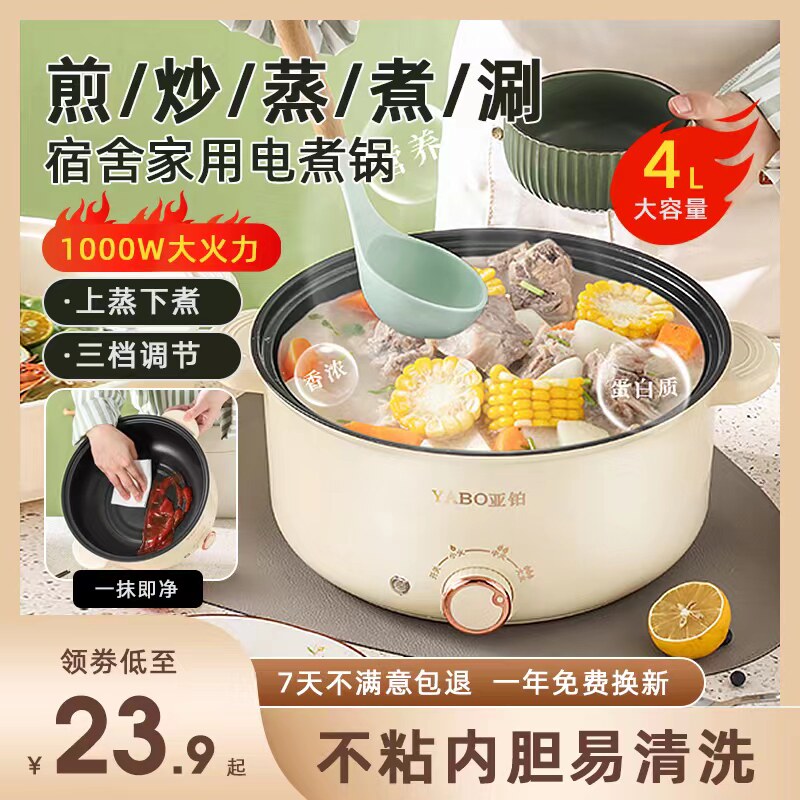 电煮锅宿舍学生锅小电锅泡面锅电炒锅一体多功能家用小锅电热火锅