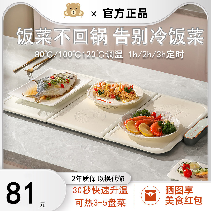 小熊暖菜板家用热菜板多功能电热保温板饭菜圆形餐桌加热垫神器