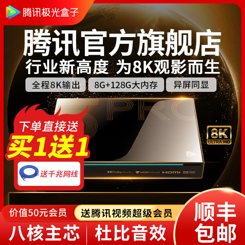 腾讯极光5X电视盒子网络机顶盒无线全通用杜比视界视频播放器企鹅