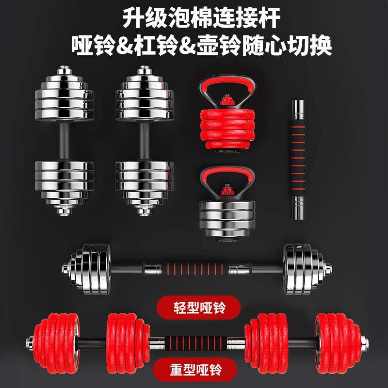 多功能纯钢小哑铃杠铃电镀两用男士健身家用快拆可调节重量50公斤