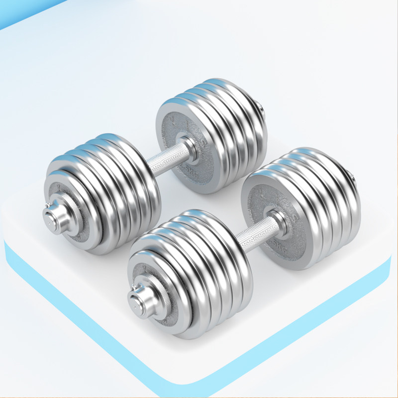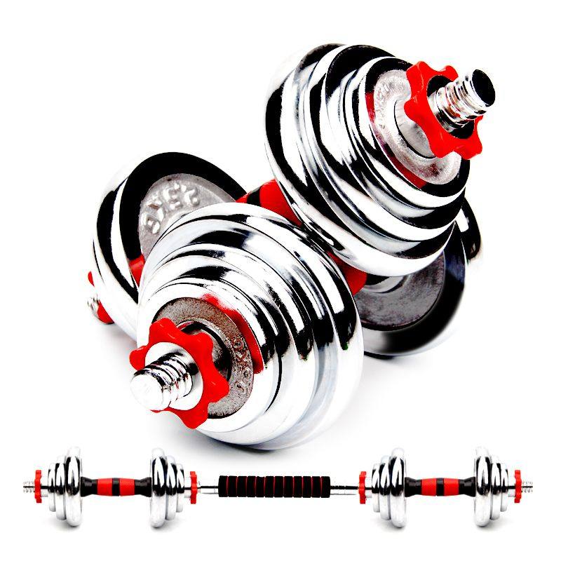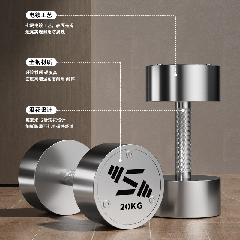 电镀纯钢哑铃男士健身家用器材可调节重量钢制可拆卸30kg一对套装