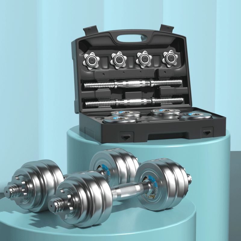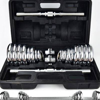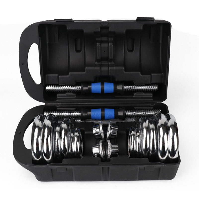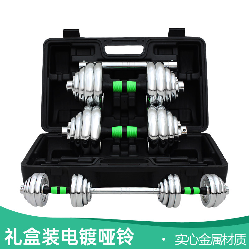 家用男士精品盒装电镀哑铃10-30公斤可调节杠铃哑铃两用健身器材