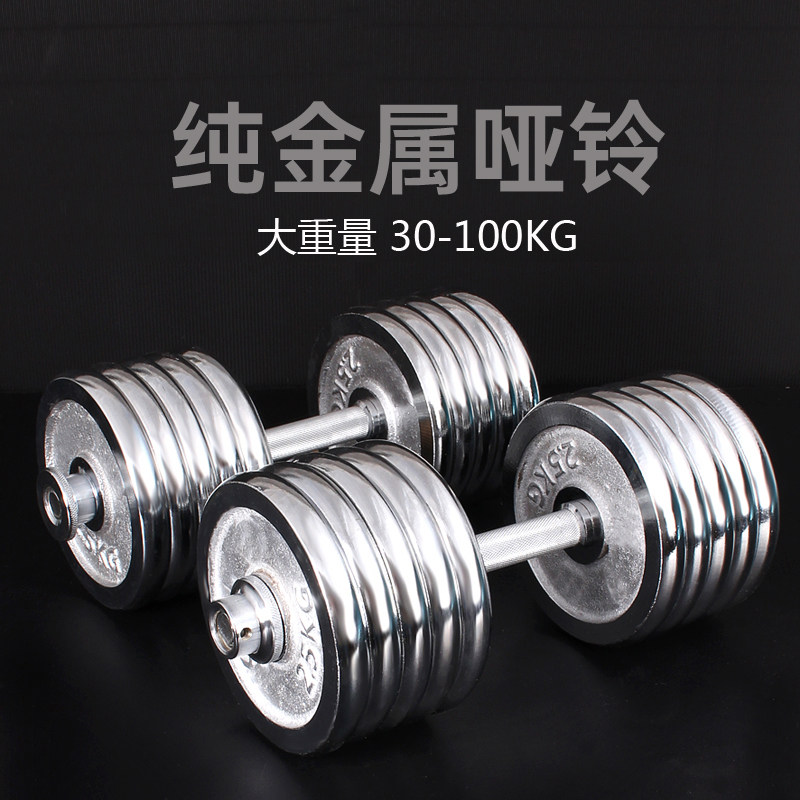 大重量可调节实心金属电镀哑铃男士家用健身练臂肌50/60/80/100KG