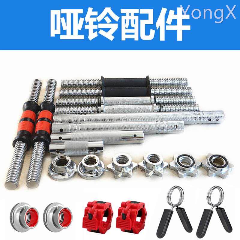 实心铸铁哑铃杆丝光杆 双保险电镀螺帽 哑铃变杠铃连接器链接杆套