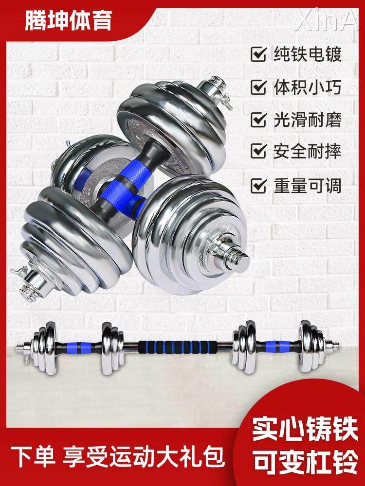 电镀哑铃男士健身家用可调节实心女纯铁哑铃杠铃两用力量训练器材