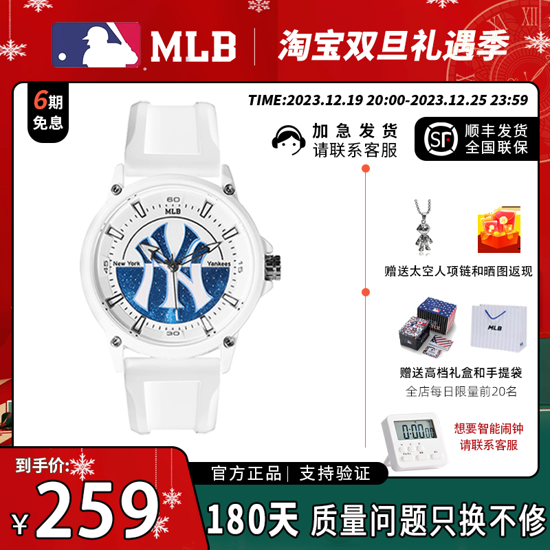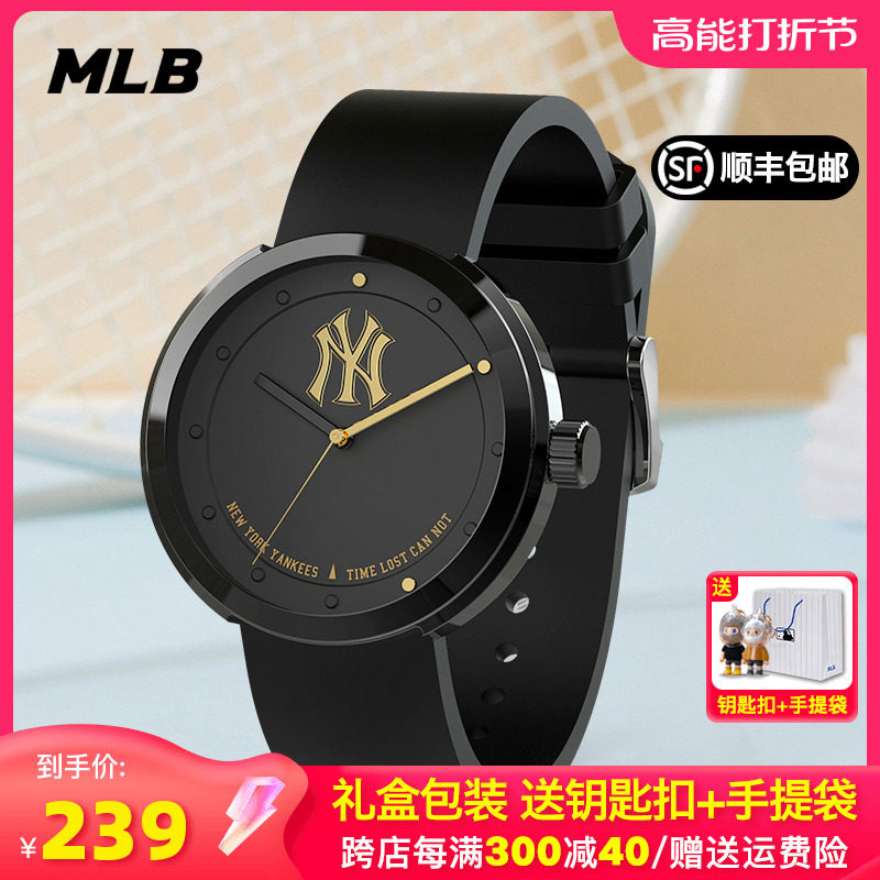 MLB美职棒手表男款黑色腕表时尚NY学生情侣休闲防水女士石英手表