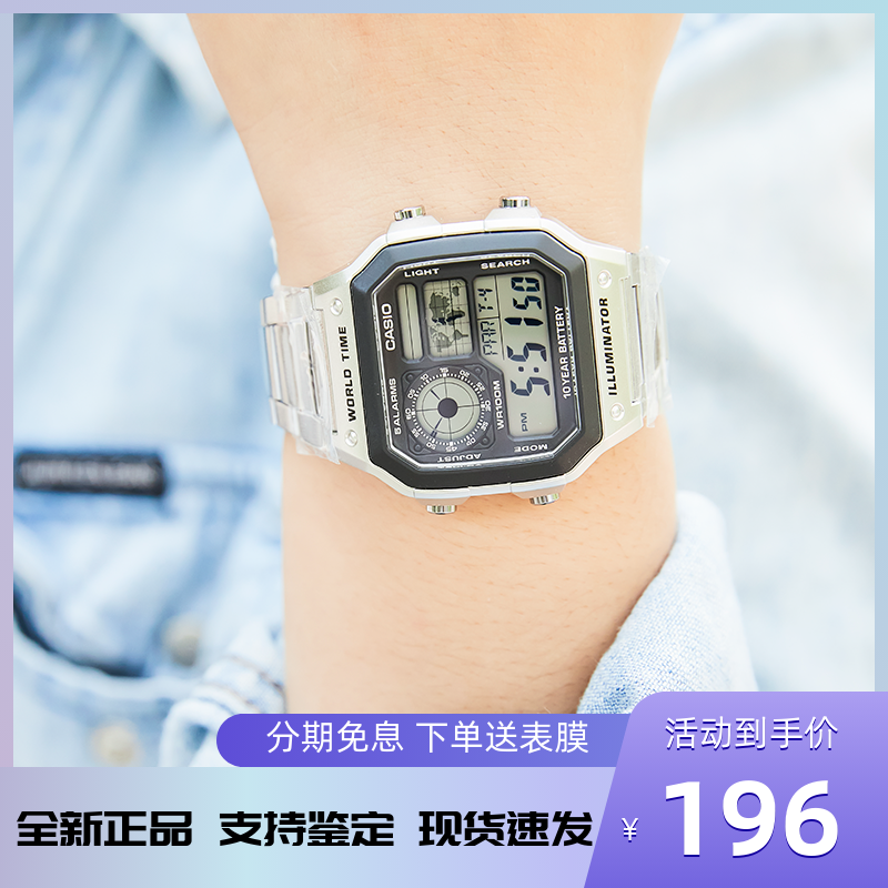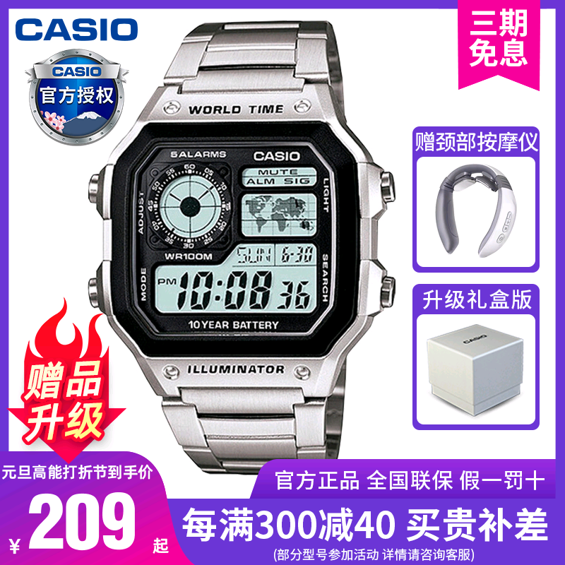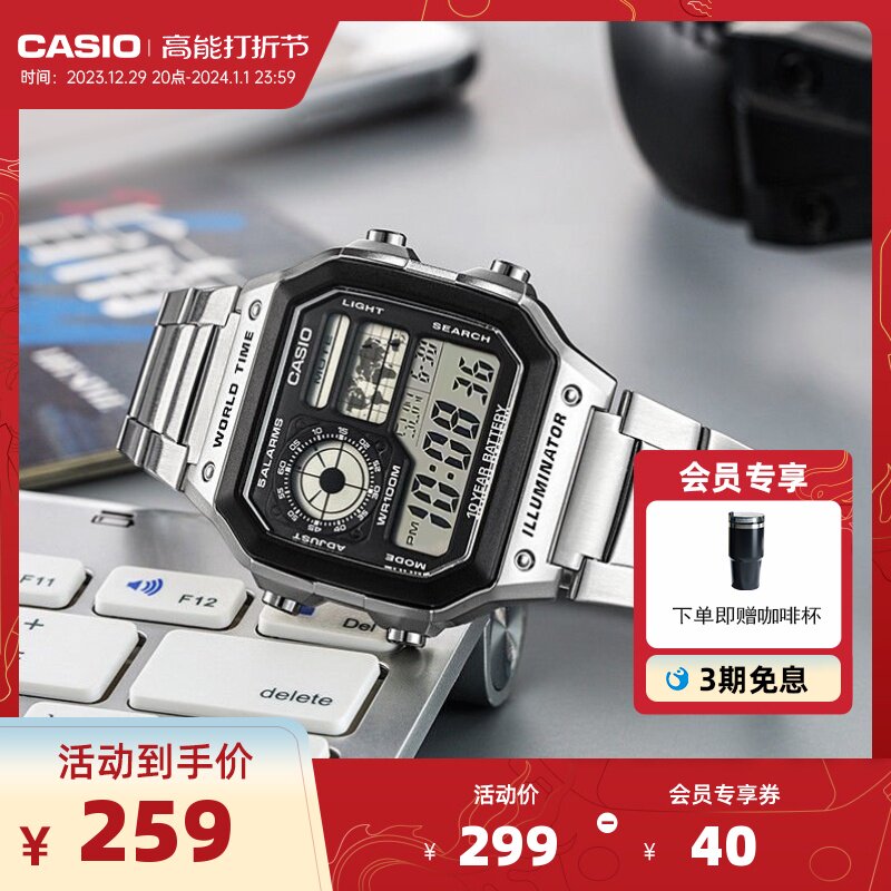 casio卡西欧旗舰店小方块男士电子手表男款AE-1200WHD学生官网