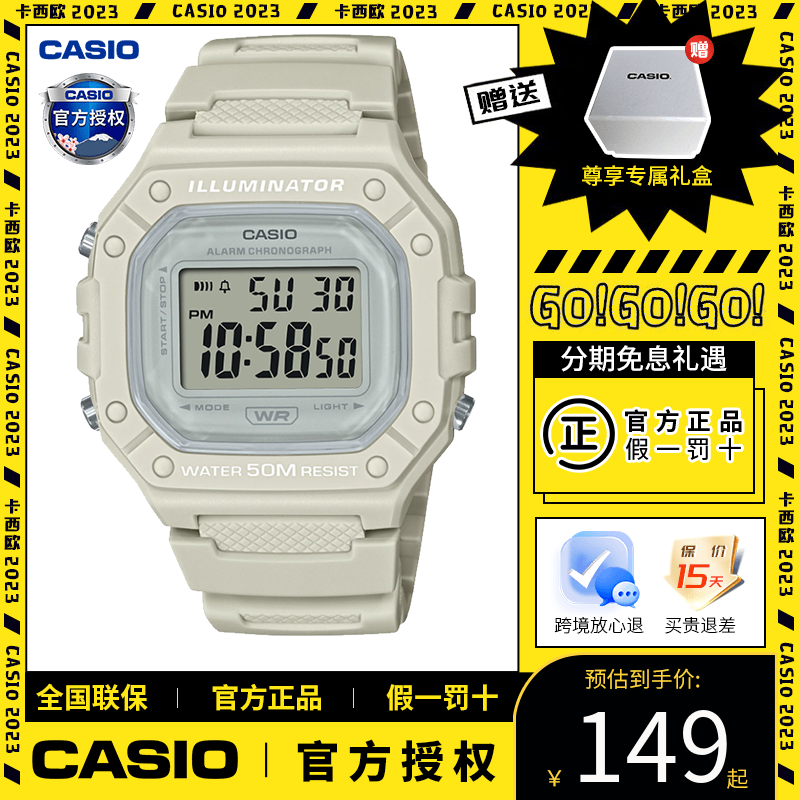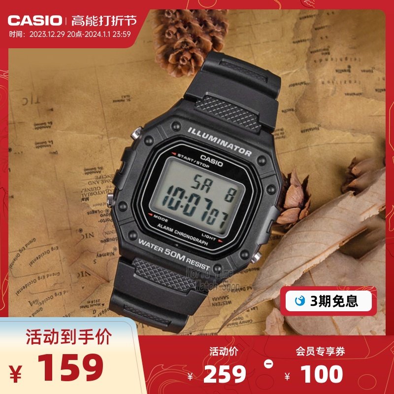 卡西欧官方官网海外旗舰店 运动防水时尚潮流复古手表男士 W-218H