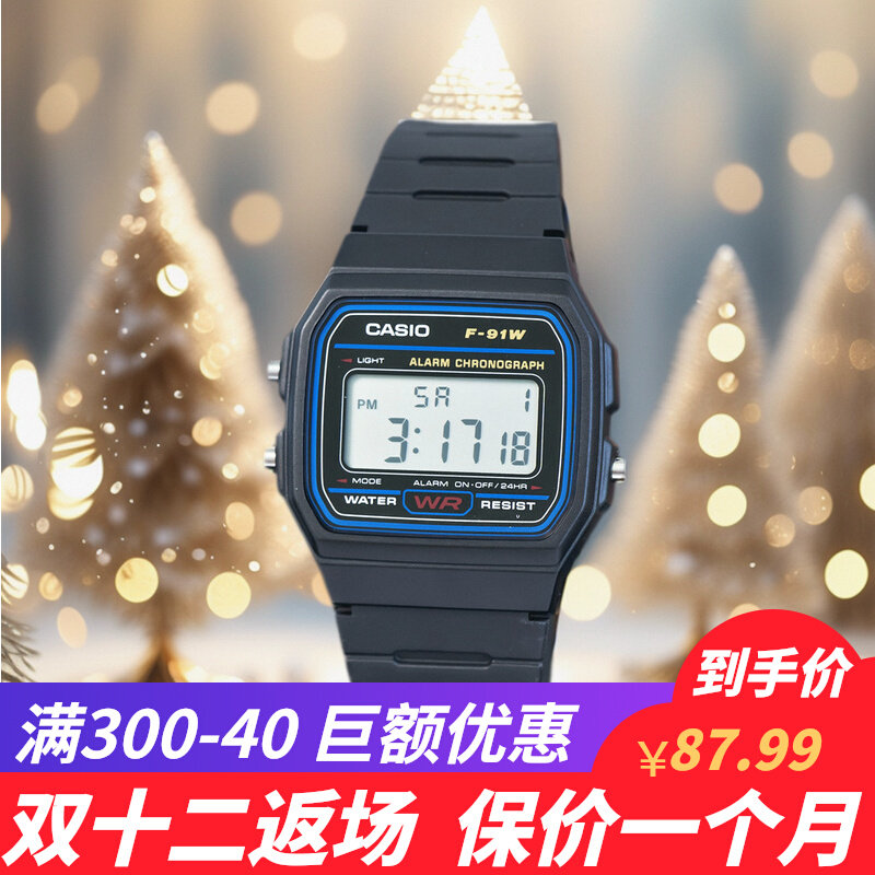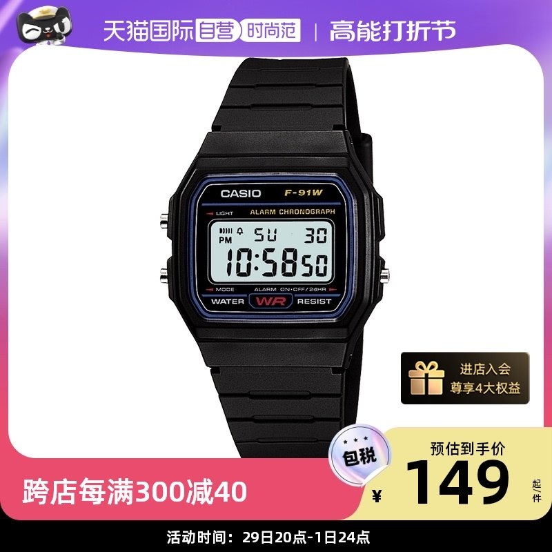 【自营】Casio 卡西欧简约复古小方块学生手表F-91W男生电子腕表