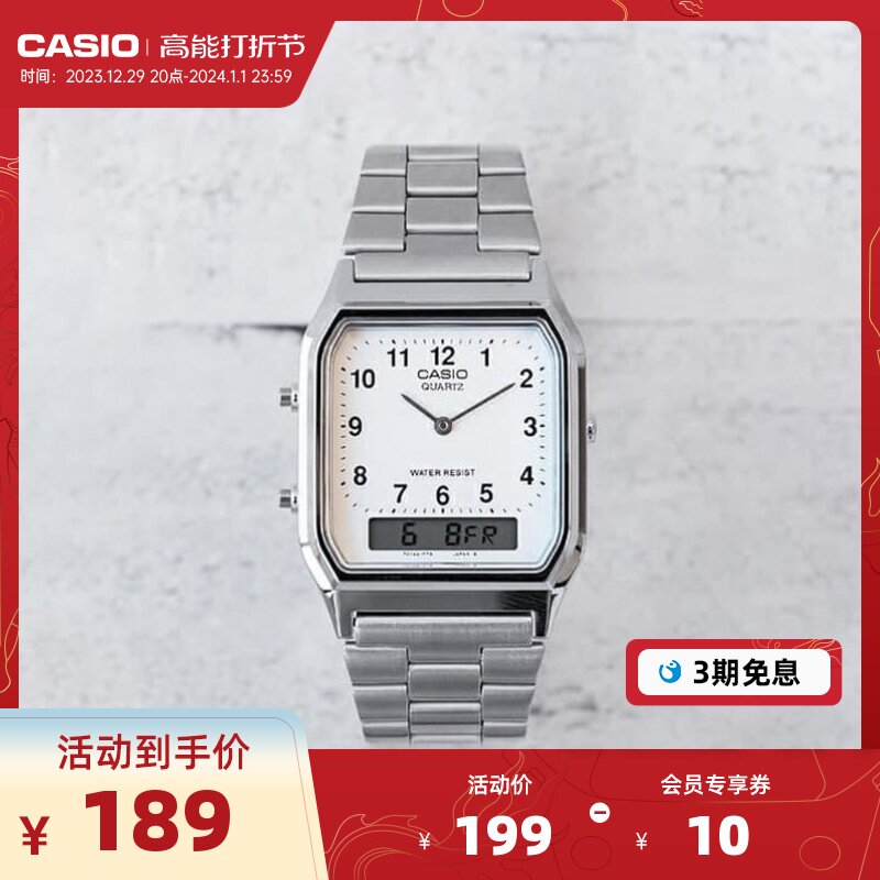 卡西欧海外旗舰店AQ-230A复古小方块电子手表男女款官方官网正品