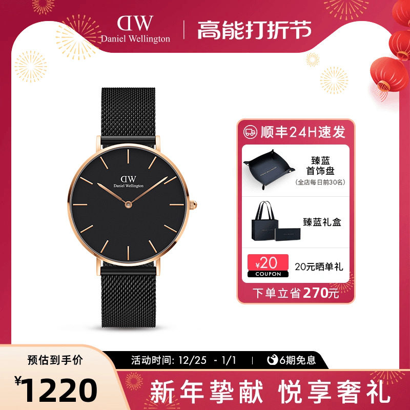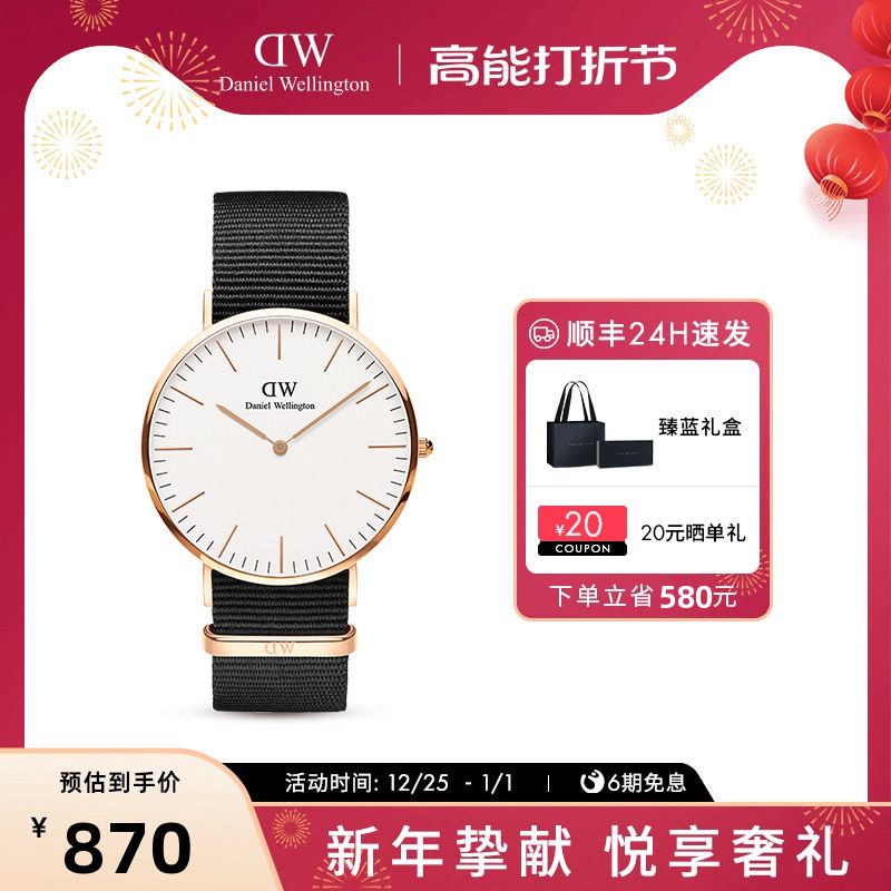 【6折秒杀】DW手表男款 CLASSIC经典纯色织纹腕表 大表盘石英表