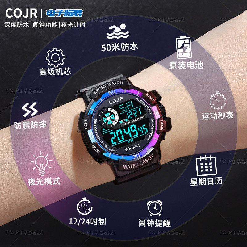 手表男款初中学生高中青少年男生运动多功能机械防水闹钟儿童电子
