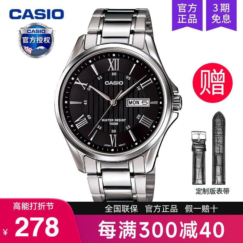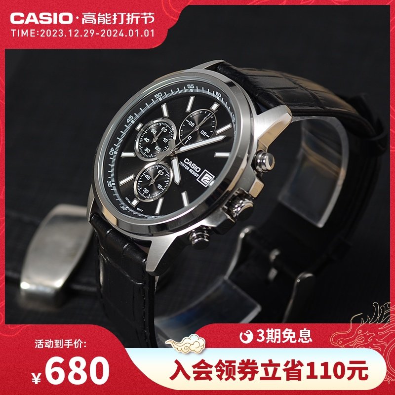 海外卡西欧男表简约真皮表带石英防水商务绅士复古时尚手表男送人