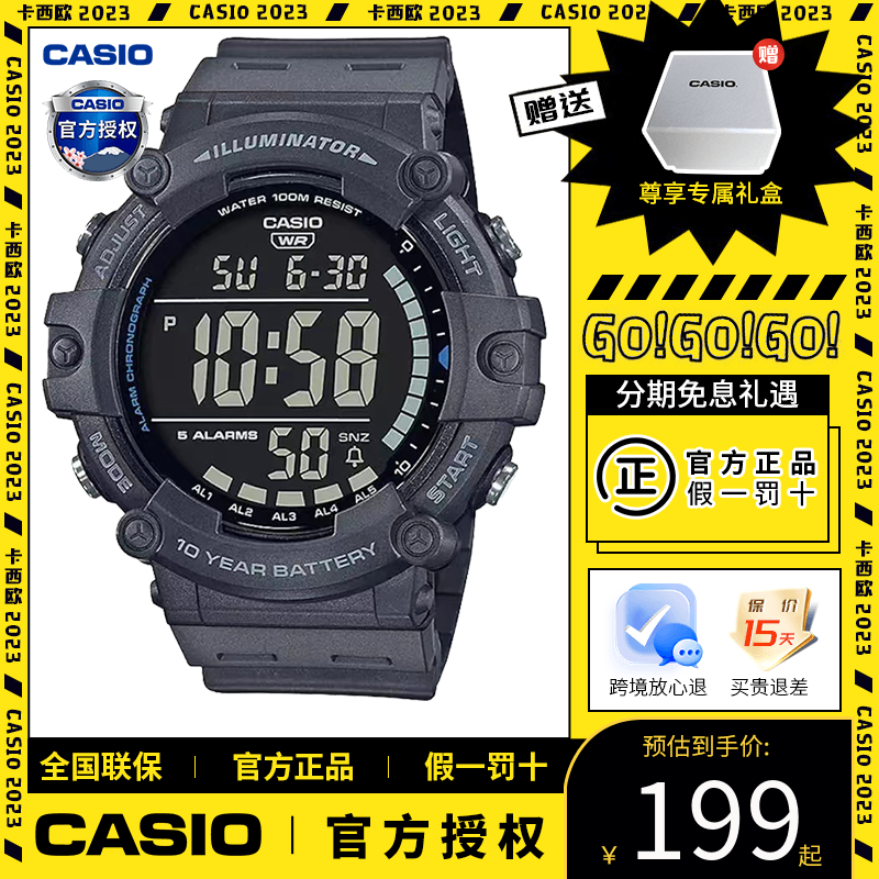 卡西欧手表男士运动电子10年电力儿童学生手表AE-1500WH 海外直邮