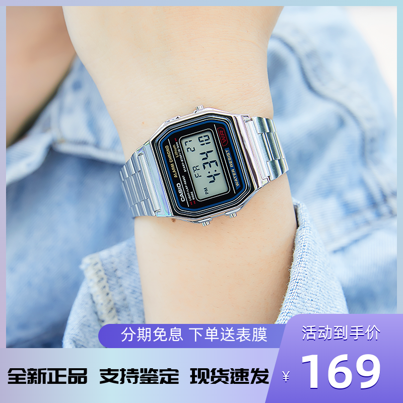 casio手表小方块复古电子男女中性表卡西欧小银块A168/A158W/A159