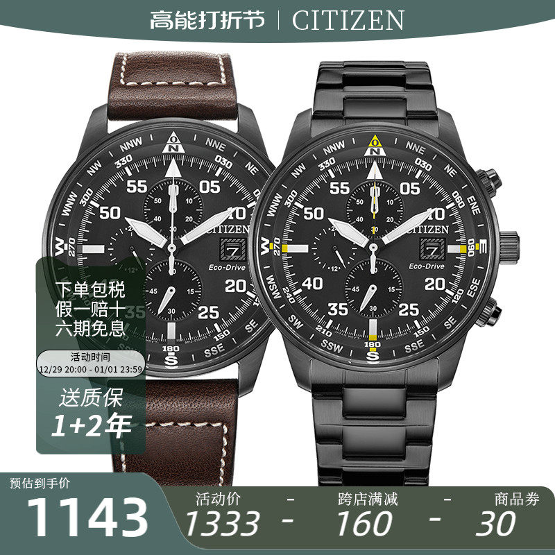 西铁城光动能小牛皮男士腕表夜光防水运动日韩手表男CA0695-17E